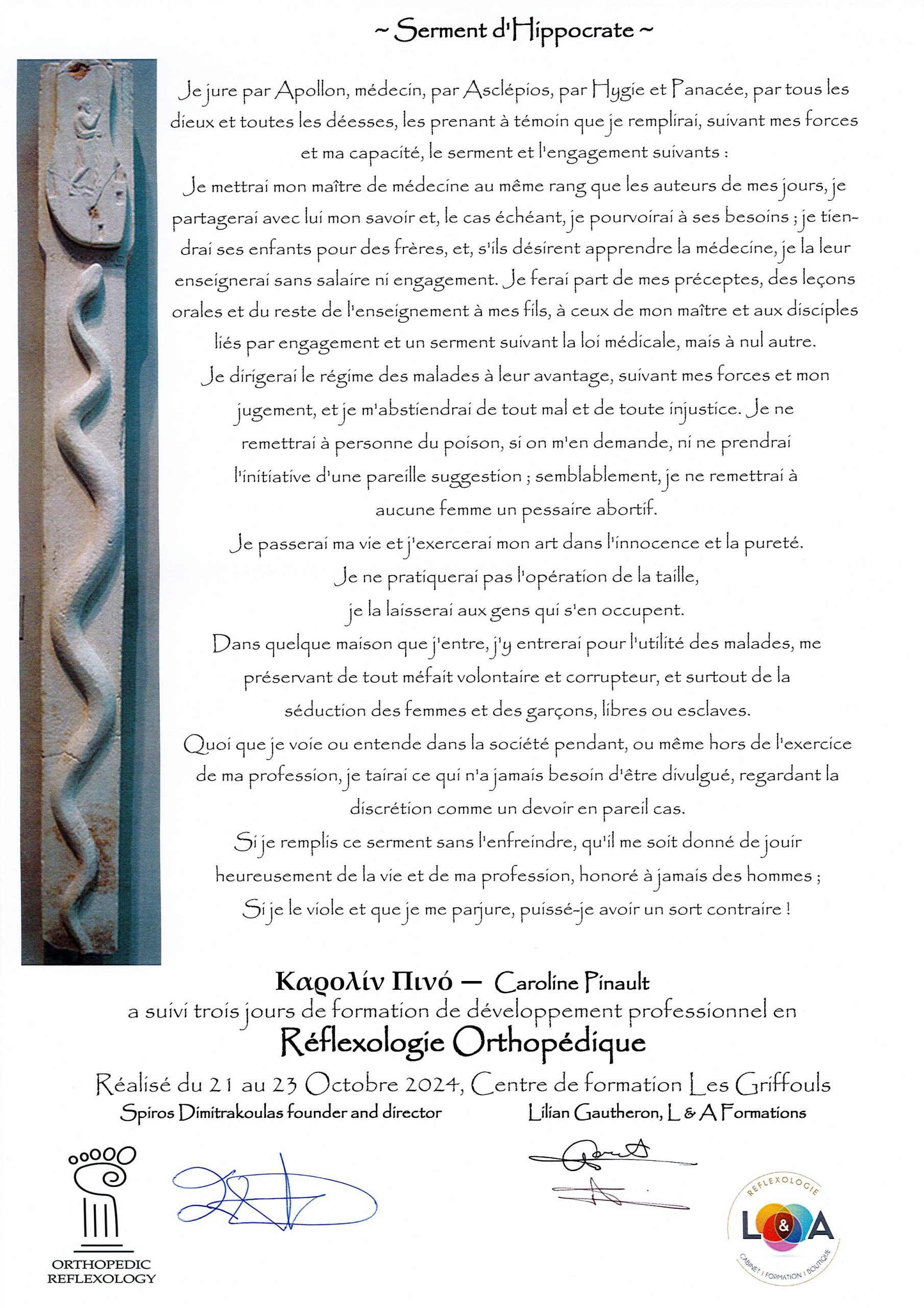 Ce titre, Réflexologue RNCP, est une Certification professionnelle de Réflexologue, Enregistrée au Répertoire Nationale des Certifications Professionnelles – RNCP, Niveau II (Fr) / Niveau 6 (Eu), Code NSF 330t. Par Arrêté du 17/07/2015, Publié au JO du 25/07/2015*.